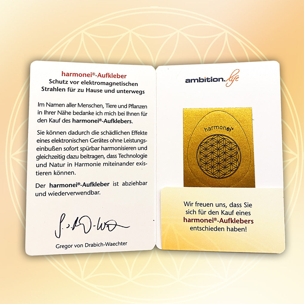 These days, smartphones are a constant companion. To protect you from cell phone radiation, we developed the harmonei® Cell Phone Radiation Protection sticker. This sticker, specially designed for cell phones, has a positive effect on electromagnetic fields and harmonizes them.