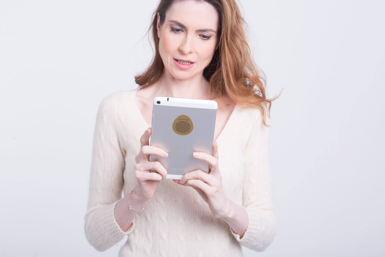 Electrosmog can cause symptoms such as fatigue, headaches, or insomnia. The Flower of Life sticker can provide relief and protection from electromagnetic radiation from Wi-Fi routers, laptops, or PCs. The harmonei® Wi-Fi protection sticker has a positive effect on electromagnetic fields, harmonizing them. When interacting with human fields, the negative effect is neutralized. This has no effect on the received signal, as the change relates exclusively to the interaction with biological cellular processes in humans.